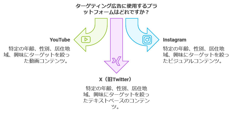 YouTube、Instagram、X(旧Twitter)などのプラットフォームでは、年齢、性別、居住地域、興味・関心といった詳細なターゲティングが可能です。ターゲティング広告を活用することで、企業の商品やサービスに関心の高いユーザーにピンポイントで広告を届けることができ、無駄のない効果的なマーケティングが可能になります。