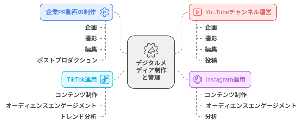 - 企業PR動画の制作:企業の魅力を伝えるプロモーションビデオを企画・制作。
