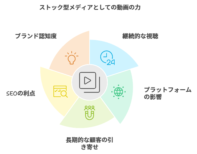 動画は一度公開すると、継続的に閲覧され続ける「ストック型メディア」です。YouTubeやInstagramといったプラットフォームに投稿された動画は、24時間365日、企業の広報活動を担ってくれます。特にYouTubeは、世界中で使用されている検索エンジンの2位に位置するほどの影響力があり、「時間が経っても新しい顧客を引き込む力」を持ちます。これは、短期的な広告では得られない持続的な集客効果を生む大きな強みです。