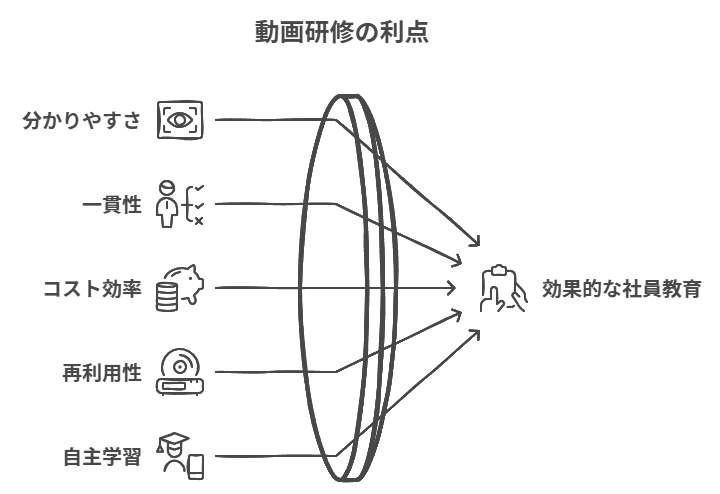 動画は、社員教育にも非常に有効です。新入社員研修や製品説明、業務プロセスの解説など、映像で教育を行うことで、「分かりやすさ」と「一貫性」を両立できます。また、必要に応じて何度でも再生できるため、研修の標準化やコスト削減にもつながります。教育資料としても再利用できるため、従来の研修方法と比べて効率的です。